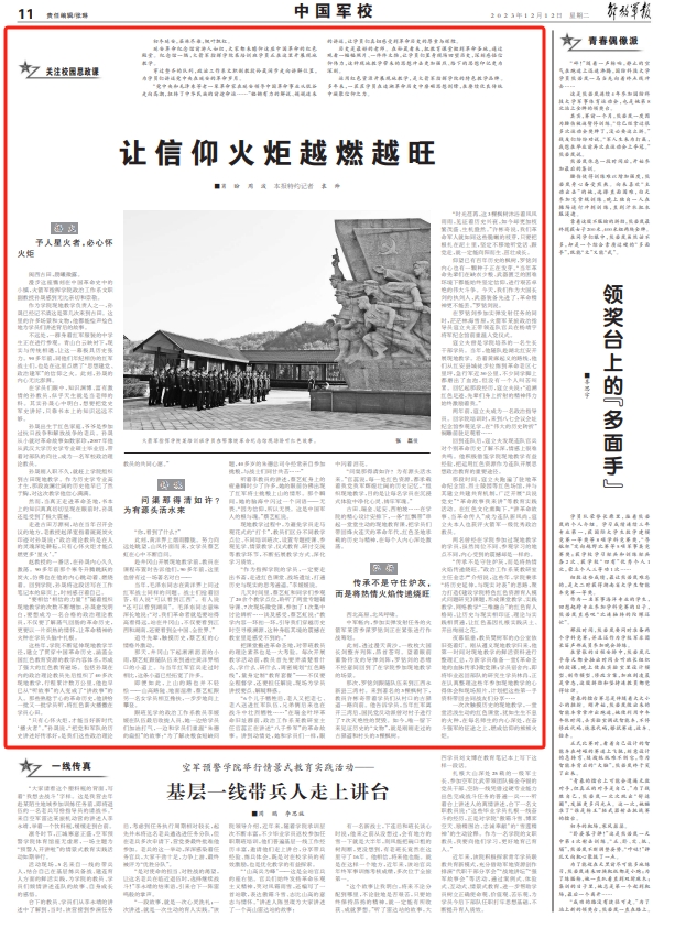 “只有心怀火炬,才能当好新时代‘播火者’。”孙晟说,“把党和军队的历史讲述好传承好,是我们这些政治理论教员的共同心愿。”